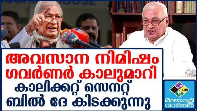 അങ്ങനെ ഗവര്ണറും സര്ക്കാരും തമ്മിലുള്ള പോരിന് മറ്റൊരു തലം കൂടി. ഒപ്പിടാതെ മറ്റിവച്ചിരിക്കുന്ന ബില്ലിന്റെ കൂട്ടത്തില് മറ്റൊന്നു കൂടി മാറി. ഗവര്ണര് ആരിഫ് മുഹമ്മദ് ഖാന് അനുമതി നല്കാത്തതിനാല് കാലിക്കറ്റ് സര്വകലാശാല സെനറ്റിലും സിന്ഡിക്കേറ്റിലും താത്കാലിക ക്രമീകരണത്തിനുള്ള ബില് തിങ്കളാഴ്ച നിയമസഭയില് അവതരിപ്പിക്കുന്നത് മാറ്റി.