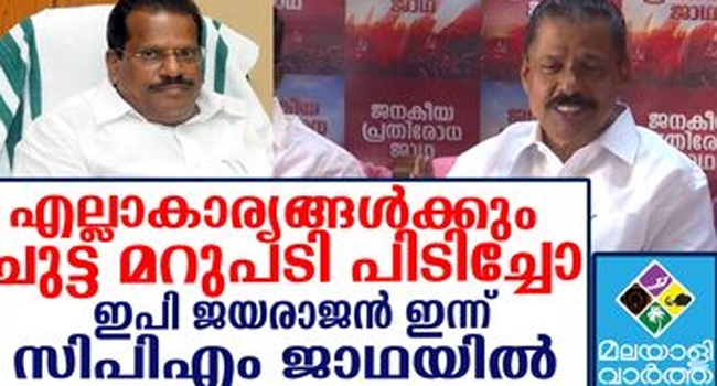 നീണ്ട നാളുകള് പാര്ട്ടി പരിപാടികളില് അധികം കാണാതിരുന്ന സിപിഎം കേന്ദ്ര കമ്മിറ്റി അംഗം എല്ഡിഎഫ് കണ്വീനറുമായ ഇ പി ജയരാജന് വീണ്ടും സജീവമാകുകയാണ്. സിപിഎം സംസ്ഥാന സെക്രട്ടറി എം വി ഗോവിന്ദന് നയിക്കുന്ന ജനകീയ പ്രതിരോധ യാത്രയില് ഇ പി ജയരാജന് ഇന്ന് പങ്കെടുക്കും.