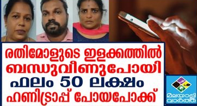 ഒത്തുതീര്പ്പ് കെണിയായി... നിര്മ്മാണ തൊഴിലാളിയായ ബന്ധുവിനെ ജോലിയുടെ ആവശ്യത്തിനെന്ന പേരില് വിളിച്ചു വരുത്തി ഹണി ട്രാപ്പില് കുടുക്കി; നഗ്നചിത്രം പ്രചരിപ്പിക്കുമെന്ന് ഭീഷണിപ്പെടുത്തി പ്രതികള് ആവശ്യപ്പെട്ടത് 50 ലക്ഷം രൂപ; യുവതികള് അടക്കം 3 പേര് അറസ്റ്റില്