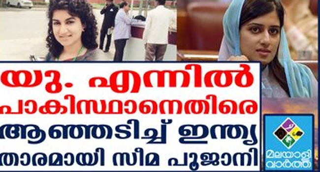 കഴിഞ്ഞ ദിവസം ഇന്ത്യയുടെ ശബ്ദമായി യുഎന്നില് മുഴങ്ങിയത് സീമ പൂജാനിയുടേതാണ്. കാശ്മീരുമായി ബന്ധപ്പെട്ട് യു. എന് മനുഷ്യാവകാശ കൗണ്സിലില് (യു.എന്.എച്ച്.ആര്.സി) ഇന്ത്യയെ വിമര്ശിച്ച പാകിസ്ഥാനെതിരെ ഇന്ത്യന് പ്രതിനിധി സീമ പൂജാനി ആഞ്ഞടിച്ചു.