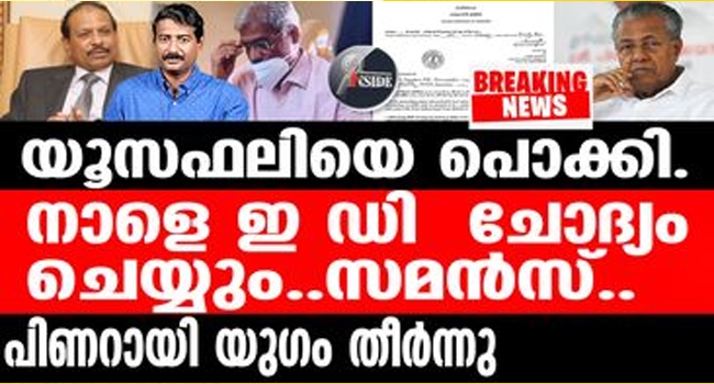അപ്പോൾ തന്നെ അന്വേഷണം യൂസഫലിയിലേക്ക് എത്തുമെന്ന് കരുതിയിരുന്നു . മുഖ്യമന്ത്രി പിണറായി വിജയന്റെ ഏറ്റവും അടുത്ത കൈയ്യെന്ന് സമൂഹമറിയുന്ന ആൾ കൂടിയാണ് എംഎയൂസഫലി. എംഎയൂസഫലിയിലേക്ക് അന്വേഷണം നീളുമെന്ന് ഊഹമുണ്ടായിരുന്നു. ഇങ്ങനെയൊരു സമൻസ് വന്നത് പുറത്തറിഞ്ഞിട്ടില്ല. രണ്ടു പ്രാവശ്യം ഇഡി നോട്ടീസ് കൊടുത്തു എന്നാണ് പുറത്തുവരുന്ന വിവരം സൂചിപ്പിക്കുന്നത് .