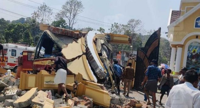 കോന്നി കിഴവള്ളൂരിൽ കെഎസ്ആർടിസി ബസും കാറും കൂട്ടിയിടിച്ച് അപകടം....നിയന്ത്രണംവിട്ട ബസ് അടുത്തുള്ള പള്ളിയുടെ കമാനത്തിലേക്ക് ഇടിച്ചുകയറി.....കമാനം തകർന്ന് ബസ്സിനു മുകളിൽ വീണ് ഒട്ടേറെപ്പേർക്ക് പരുക്കേറ്റു....മൂന്ന് പേരുടെ നില ഗുരുതരം..