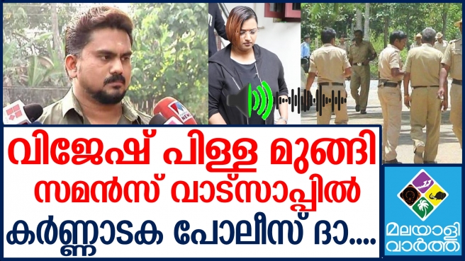 സ്വർണ്ണക്കടത്തുകേസ് പ്രതി സ്വപ്ന സുരേഷ് നൽകിയ പരാതിപ്രകാരം കർണ്ണാടക പോലീസ് വിജേഷ് പിള്ളക്ക് സമന്സ് നൽകിയെങ്കിലും മറുപടി ലഭിച്ചിട്ടില്ല. ബന്ധപ്പെടാന് സാധിക്കാത്തതിനാല് വാട്സ്ആപ്പ് വഴിയാണ് സമന്സ് അയച്ചത്. എത്രയും പെട്ടെന്ന് കെആര്പുര പോലീസ് സ്റ്റേഷനില് ഹാജരാകാനാണ് സമന്സ് നല്കിയത്. എന്നാല് മറുപടിയൊന്നും നല്കിയിട്ടില്ല. വിജേഷ് പിള്ളയെ കണ്ടെത്താന് ആവശ്യമെങ്കില് കേരളാ പോലീസിന്റെ സഹായം തേടുമെന്നും ബെംഗളൂരു വൈറ്റ്ഫീല്ഡ് ഡിസിപി എസ് ഗിരീഷ് പറയുന്നു.. ഇതോട വിജേഷ് ഒളിവില് പോയിയെന്നാണ് വിവരം.