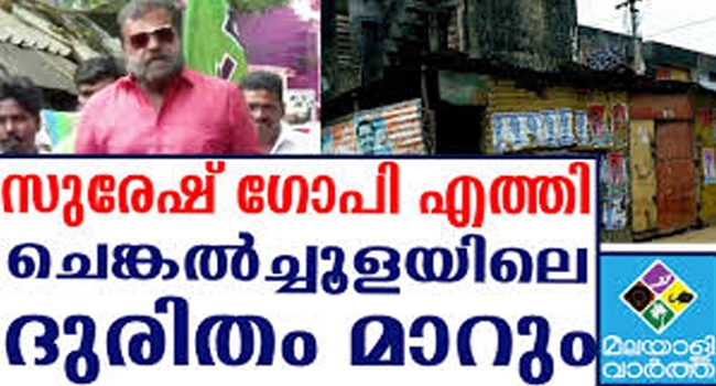 ചെങ്കല്ചൂള രാജാജിനഗറിലെ ദുരിതജീവിതത്തിന് പരിഹാരം കാണാന് നടന് സുരേഷ്ഗോപിയെത്തി. രാജാജിനഗറിലെ ജനങ്ങളുടെ ആവശ്യപ്രകാരമാണ് അദ്ദേഹം സ്ഥലത്തെത്തിയത്. സുരേഷ്ഗോപിയെ കണ്ടതോടെ ടിന്ഷീറ്റുകള് പാകി തകര്ന്നുവീഴാറായ വീടുകളില് ദുര്ഗന്ധപൂരിതമായ പരിസരത്ത് ദുരിതജീവിതം നയിക്കേണ്ടിവന്നവരുടെ സങ്കടങ്ങള് അണപൊട്ടി. അന്പതുവര്ഷത്തിലേറെയായി തങ്ങള്ക്ക് കിട്ടിയ ഫല്റ്റുകള് ആള്താമസത്തിന് പറ്റാത്തവിധം മേല്ക്കൂര അടര്ന്നുവീഴുന്നതായും ചിലര് പരാതിപ്പെട്ടു.