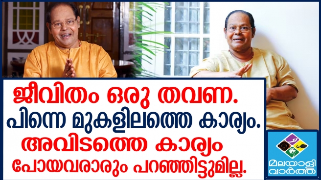 നമ്മള്ക്ക് ഒരു തവണയേ ഇവിടെ ജീവിക്കാനുള്ള ഭാഗ്യമുള്ളൂ. അതു കഴിഞ്ഞാല് പിന്നെ മുകളിലാണ്. അവിടെ നല്ല സുഖമാണ് എന്ന് പോയവരാരും തന്നെ തിരിച്ചുവന്ന് പറഞ്ഞിട്ടുമില്ല. കാര്യം നമുക്ക് മനസ്സിലായി. അപ്പന് പോയി, മുത്തശ്ശി പോയി. പോയവര് പോയി. അവര്ക്കും പോയി. ഇവിടെ ഉള്ള കാലം ഒരുപാട് കാശ് കയ്യില് ഉണ്ടായിട്ട് കാര്യമില്ല, മനസ്സിന് സുഖം, സമാധാനം... അതാണ് ഇന്നസെന്റ്...