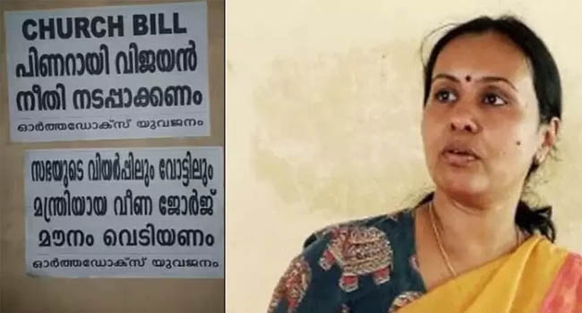 `സഭയുടെ വിയര്പ്പിലും വോട്ടിലും മന്ത്രിയായ വീണ ജോര്ജ് മൗനം വെടിയണം' എന്നാണ് പോസ്റ്റര്. പത്തനംതിട്ടയിലെ വിവിധ ഓര്ത്തഡോക്സ് പള്ളികളുടെ മുന്നിലാണ് പോസ്റ്റര് പതിച്ചിരിക്കുന്നത്. 'ഓര്ത്തഡോക്സ് യുവജനം' എന്ന പേരിലാണ് പോസ്റ്റര് പതിപ്പിച്ചിരിക്കുന്നത്. പിണറായി വിജയന് നീതി നടപ്പിലാക്കണമെന്നും പോസ്റ്ററിലുണ്ട്. ഞായറാഴ്ച പുലര്ച്ചെയാണ് പോസ്റ്റുകള് നാട്ടുകാരുടെ ശ്രദ്ധയില്പ്പെട്ടത്.