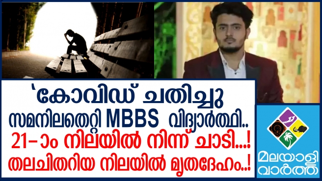 കോവിഡ് ചതിച്ചു സമനിലതെറ്റി MBBS വിദ്യാർത്ഥി.. 21-ാം നിലയില് നിന്ന് ചാടി...! തലചിതറിയ നിലയിൽ മൃതദേഹം..!