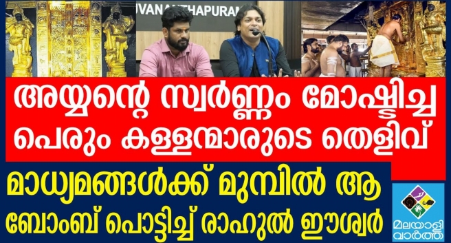 അയ്യന്റെ സ്വർണ്ണം മോഷ്ടിച്ച പെരും കള്ളന്മാരുടെ തെളിവ് മാധ്യമങ്ങൾക്ക് മുമ്പിൽ ആ ബോംബ് പൊട്ടിച്ച് രാഹുൽ ഈശ്വർ
