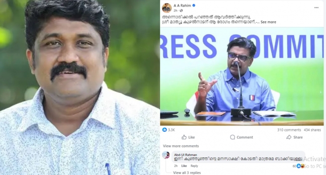 'മാത്യൂ കുഴൽനാടന് അറ്റൻഷൻ സീക്കിങ് സിൻഡ്രോം';അതുശരിവെച്ച് സുപ്രീംകോടതി, കുഴൽനാടനെ പരിഹസിച്ച് എ എ റഹീം എംപി രംഗത്ത്