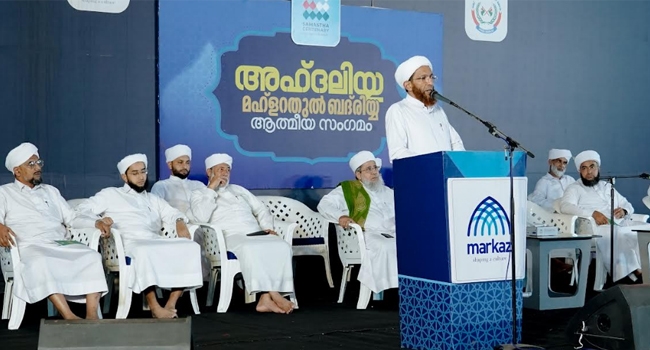 മാസാന്ത ആത്മീയ സദസ്സായ അഹ്ദലിയ്യയുടെ ഭാഗമായി മർകസിൽ സംഘടിപ്പിച്ച ജീലാനി ഉറൂസും താജുൽ ഉലമ അനുസ്മരണവും സമാപിച്ചു. പൊതുജനങ്ങളുൾപ്പെടെ ആയിരത്തിലധികം പേർ സംബന്ധിച്ച സംഗമം ഡയറക്ടർ ജനറൽ സി മുഹമ്മദ് ഫൈസി ഉദ്ഘാടനം ചെയ്തു. ദീനിനെയും സുന്നത്ത് ജമാഅത്തിനെയും ശക്തിപ്പെടുത്തിയ മഹത്തുക്കളെ അനുസ്മരിക്കുന്നതും അവരുടെ മാതൃകകൾ അനുധാവനം ചെയ്യുന്നതും വിശ്വാസത്തെയും കർമങ്ങളെയും ശക്തിപ്പെടുത്തുമെന്ന് അദ്ദേഹം പറഞ്ഞു. മർകസ് പ്രസിഡന്റ് സയ്യിദ് അലി ബാഫഖി തങ്ങൾ പ്രാർഥന നിർവഹിച്ചു. സയ്യിദ് ശറഫുദ്ദീൻ ജമാലുല്ലൈലി അധ്യക്ഷത വഹിച്ചു.