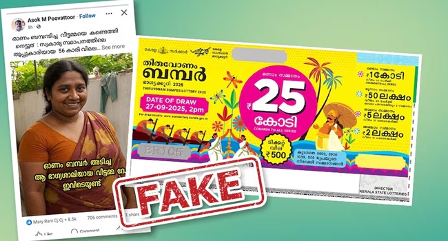 ഇതിനിടെ ബമ്പറിട്ട സ്ത്രീയുടേന്ന പേരില് ഒരു ചിത്രവും കുറിപ്പും സൈബറിടത്തില് നിറഞ്ഞു. സ്വകാര്യ സ്ഥാപനത്തിലെ തൂപ്പുകാരിയായ 56 കാരി വിമലയാണ് ആ ഭാഗ്യശാലി വാടകവീട്ടിലാണ് വിമലയും കിടപ്പ് രോഗിയായ ഭ4ത്താവും രണ്ട് പെണ്മക്കളും താമസിക്കുന്നത് എന്ന് വാര്ത്ത പ്രചരിച്ചു. ഇതുകൂടി ആയതോടെ വീട്ടമ്മായ്ക്ക് ഉറക്കംപോയി. രാവിലെ മുതല് വൈകിട്ട് വരെ വീട് തേടി ആളുകളെത്തി തുടങ്ങി. വിമലയുടെ ഏകവരുമാനത്തിലായിരുന്നു വാടകവീട്ടില് ഈ നി4ദ്ധനകുടുംബം കഴിഞ്ഞിരുന്നത് ഓണം ഒരുങ്ങാന് വേണ്ടി ഞങ്ങള് സ്നേഹിച്ചു വളര്ത്തിയ നീലി എന്ന ആടിനെ വിറ്റ് കിട്ടിയ പൈസയില് നിന്ന് മിച്ചം വന്ന പൈസകൊണ്ടാണ് ഞാന് നെട്ടൂരിലെ ഒരു ഏജന്സിയില് നിന്ന് ഓണം ബമ്പര് എടുത്തത്. നീലി ആടാണ് ഞങ്ങള്ക്ക് ഭാഗ്യം കൊണ്ടുവന്നത്. നീലി ആടിനെ വാങ്ങിയവര് തിരിച്ചു തന്നാല് ഇരട്ടിവില തന്ന് നീലിയെ തിരികെ വാങ്ങാന് തയ്യാറാണെന്നും വിമലപറഞ്ഞു. വിമലയുടെ ആഗ്രഹം സ്വന്തമായി ഒരു വീടും ഭര്ത്താവിന് മികച്ച ചികിത്സയും പെണ്മക്കളുടെ വിവാഹവും നടത്തുക ഇത്രയുമാണ് വിമലയുടെ ആഗ്രഹങ്ങള്. എന്നെപോലെ ദാരിദ്ര്യത്തില് കഴിയുന്ന പാവപെട്ട കുടുംബങ്ങളെ എനിയ്ക്ക് സഹായിക്കാന് താല്പര്യമുണ്ട് അര്ഹതപ്പെട്ടവര് വന്നാല് ഞാന് തീര്ച്ചയായും സഹായിക്കും എന്നും വിമല കൂട്ടിച്ചേര്ത്തു !! എന്ന കുറിപ്പിനൊപ്പമാണ് ചിത്രം പ്രചരിച്ചത്. എന്നാല് ആ ചിത്രം എഐ ഉപയോഗിച്ച് ഉള്ളതായിരുന്നു.