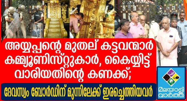 അയ്യപ്പന്റെ മുതല് കട്ടവന്മാർ കമ്മ്യൂണിസ്റ്റുകാർ, കൈയ്യിട്ട് വാരിയതിന്റെ കണക്ക്; ദേവസ്വം ബോർഡിന് മുന്നിലേക്ക് ഇരച്ചെത്തിയവർ