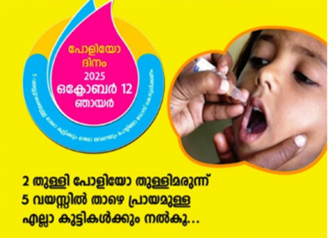 പള്സ് പോളിയോ ഇമ്മ്യൂണൈസേഷന് ഒക്ടോബര് 12ന്; 5 വയസ് വരെയുള്ള 21 ലക്ഷം കുഞ്ഞുങ്ങള്ക്ക് തുള്ളി മരുന്ന് നല്കും; 22,383 പോളിയോ ബൂത്തുകള് സജ്ജം