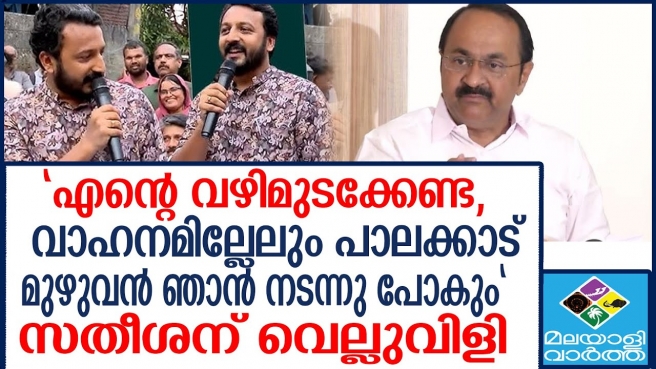 "എന്റെ വഴിമുടക്കേണ്ട, വാഹനമില്ലേലും പാലക്കാട് മുഴുവൻ ഞാൻ നടന്നു പോകും" സതീശന് വെല്ലുവിളി