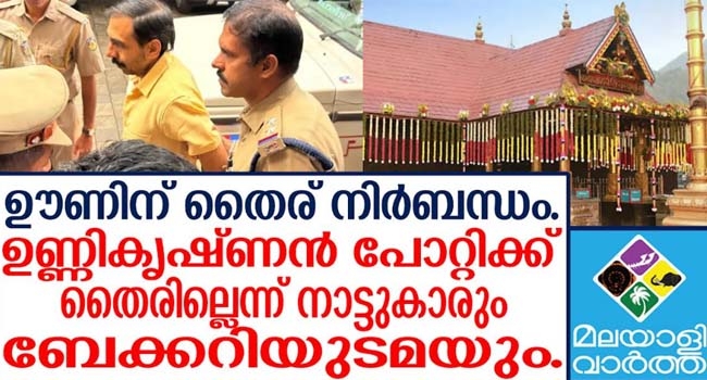 ശബരിമല സ്വർണ്ണക്കവർച്ച കേസിൽ ഉണ്ണികൃഷ്ണന് പോറ്റി അറസ്റ്റിലായതോടെ നിര്ണായക വഴിത്തിരിവാണ് ഉണ്ടായിരിക്കുന്നത്. അതിനിടെ ശബരിമല സ്വർണ്ണക്കവർച്ച കേസിൽ അറസ്റ്റിലായ ഉണ്ണികൃഷ്ണൻ പോറ്റിക്ക് ഉച്ചയൂണിന് കഴിക്കാൻ തൈര് ചോദിച്ച് പത്തനംതിട്ട എ.ആർ. ക്യാമ്പിലെ ജീവനക്കാർ. ഉണ്ണികൃഷ്ണൻ പോറ്റിക്ക് ആണെങ്കിൽ തൈര് നൽകില്ലെന്ന് ക്യാമ്പിനോട് ചേർന്ന ചച്ചൂസ് ബേക്കറിയുടമ. ഇത്ര വലിയ തട്ടിപ്പുകാരന് കൊടുക്കാൻ തൈര് നൽകില്ലെന്നാണ് ജീവനക്കാരി പൊലീസിനോട് വിശദമാക്കിയത്. റാന്നി കോടതിയിൽ നിന്ന് ഉച്ചയ്ക്കാണ് ഉണ്ണികൃഷ്ണൻ പോറ്റിയെ എസ്പി ഓഫീസിലെത്തിച്ചത്. മെസിൽ നിന്നുള്ള ജീവനക്കാർ എത്തി തൈര് ആവശ്യപ്പെട്ടപ്പോൾ പതിവ് പോലെ നാലഞ്ച് പാക്കറ്റുമായി എത്തിയ ബീനയോട് ഒരു കവർ മതിയെന്ന് പറഞ്ഞപ്പോളാണ് യുവതിക്ക് എന്തോ പന്തികേട് തോന്നിയത്. വിവരം ചോദിച്ചപ്പോളാണ് തൈര് ഉണ്ണികൃഷ്ണൻ പോറ്റിക്കാണെന്ന് മനസിലായത്. പേര് കേട്ടതോടെ കടയിൽ ഉണ്ടായിരുന്നവരുടെ വിധം മാറി. ദൈവത്തിന്റെ മുതല് കട്ടവർക്ക് തൈര് കൊടുക്കേണ്ടെന്ന് നാട്ടുകാർ പറഞ്ഞതോടെ ബീനയും സമാന നിലപാട് സ്വീകരിക്കുകയായിരുന്നു.