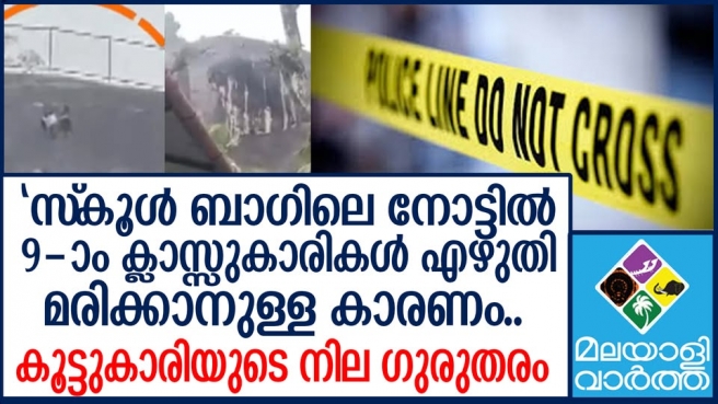 മരുതിമലയുടെ മുകളില്നിന്ന് താഴേക്കുവീണ് വിദ്യാര്ഥിനി മരിച്ച സംഭവത്തില് സര്വ്വത്ര ദുരൂഹത...കൂട്ടുകാരികള് താഴേക്ക് ചാടിയെന്നാണ് സംശയം..ബാഗിലുണ്ടായിരുന്ന ബുക്കില് കുട്ടികള് പോകുന്നതുമായി ബന്ധപ്പെട്ടുള്ള ചില സൂചനകള് ?