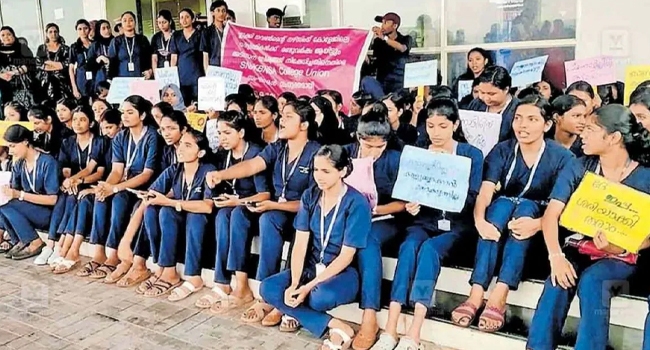 പ്രവര്ത്തനം ആരംഭിച്ച് 2 വര്ഷം പിന്നിട്ടിട്ടും അംഗീകാരവും അടിസ്ഥാന സൗകര്യങ്ങളും ലഭ്യമാക്കാത്തതില് പ്രതിഷേധിച്ചാണ് ഇടുക്കി ഗവ. നഴ്സിങ് കോളജിലെ വിദ്യാര്ഥികള് അനിശ്ചിതകാല സമരം തുടങ്ങിയത്. സമരത്തിന് കേരള ബിഎസ്സി നഴ്സിങ് സ്റ്റുഡന്റ്സ് അസോസിയേഷന് സംസ്ഥാന കൗണ്സിലും വിവിധ നഴ്സിങ് കോളജുകളിലെ വിദ്യാര്ഥികളും പൂര്ണപിന്തുണ പ്രഖ്യാപിച്ചു. 2023ല് തുടങ്ങിയ കാസര്കോട്, വയനാട്, പാലക്കാട്, ഇടുക്കി, പത്തനംതിട്ട, തിരുവനന്തപുരം അനെക്സ് കോളജുകളില് അടിസ്ഥാന സൗകര്യങ്ങളോ വേണ്ടത്ര അധ്യാപകരോ ഇന്ത്യന് കൗണ്സില് അംഗീകാരമോ ഇല്ല എന്നുള്ളത് പലതവണ അധികൃതരുടെ ശ്രദ്ധയില്പെടുത്തിയിട്ടും ഒരു നടപടിയും സ്വീകരിച്ചിട്ടില്ല. നഴ്സിങ് കോളജില് നിന്നു പ്രകടനമായി മെഡിക്കല് കോളജിനു മുന്നില് മുദ്രാവാക്യം വിളികളുമായി എത്തിയ വിദ്യാര്ഥികള് സമരം തുടരുകയാണ്. രക്ഷിതാക്കളും വിദ്യാര്ഥികള്ക്കൊപ്പം സമരത്തില് പങ്കെടുക്കുന്നുണ്ട്.