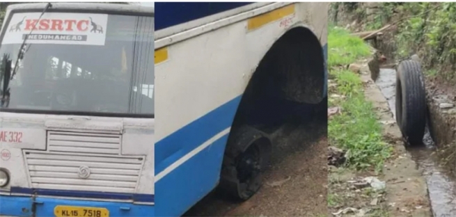 ഓടിക്കൊണ്ടിരുന്ന കെ.എസ്.ആര്.ടി.സി ബസിന്റെ ടയര് ഊരിത്തെറിച്ചു