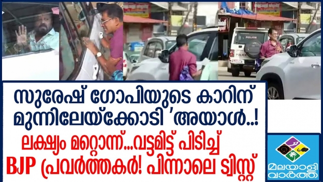 സുരേഷ് ഗോപിയുടെ വാഹനം തടഞ്ഞു; നിവേദനം നൽകാനെത്തിയയാളെ ബിജെപി പ്രവർത്തകർ പിടിച്ചുമാറ്റി; പിന്നാലെ നിവേദനം വാങ്ങി മടക്കം
