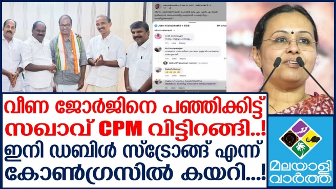 വീണ ജോർജിനെ പഞ്ഞിക്കിട്ട് സഖാവ് CPM വിട്ടിറങ്ങി..! ഇനി ഡബിൾ സ്ട്രോങ്ങ് എന്ന് കോൺഗ്രസിൽ കയറി...!