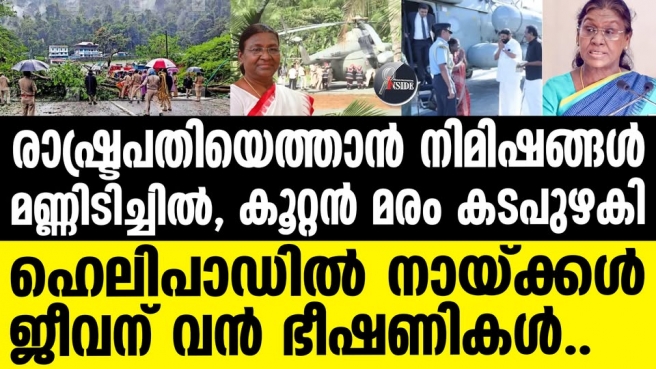 മഹാസമാധി ശതാബ്ദി ആചരണത്തിന്റെ ഉദ്ഘാടനം നിര്വഹിക്കും. വൈകിട്ടു 4.15നു പാലാ സെന്റ് തോമസ് കോളജില് പ്ലാറ്റിനം ജൂബിലി ആഘോഷത്തിന്റെ സമാപനം ഉദ്ഘാടനം ചെയ്തശേഷം കുമരകത്തെ റിസോര്ട്ടില് താമസിക്കും. 24നു 12നു കൊച്ചി സെന്റ് തെരേസാസ് കോളജിലെ ശതാബ്ദി ആഘോഷ പരിപാടിയില് സംബന്ധിച്ച്, വൈകിട്ടു 4.15നു കൊച്ചി രാജ്യാന്തരവിമാനത്താവളത്തില്നിന്നു ഡല്ഹിക്കു തിരിക്കും. ശബരിമല സന്ദര്ശനത്തിനിടെ രാഷ്ട്രപതിയുടെ ഹെലികോപ്റ്റർ ടയര് പ്രമാടത്ത് പുതഞ്ഞുപോയ സംഭവത്തിൽ സുരക്ഷ വീഴ്ചയില്ലെന്ന് സംസ്ഥാന ആഭ്യന്തര വകുപ്പ്.