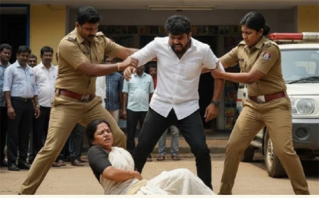 കാമുകനൊപ്പം ഒളിച്ചോടിയ ഭാര്യയെ പൊലീസ് സ്റ്റേഷന് പരിസരത്ത് വെച്ച് പഞ്ഞിക്കിട്ട് ഭര്ത്താവ്