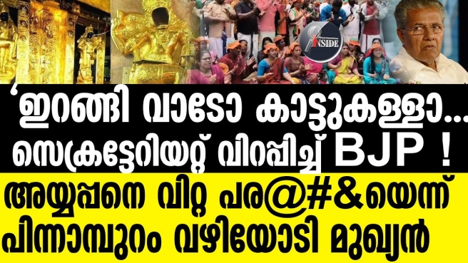 ശബരിമല സ്വര്ണക്കൊള്ളയില് കൈപൊള്ളി പിണറായി സര്ക്കാര്. ഇറങ്ങി വാടോ കാട്ടുകള്ളാ...അയ്യപ്പനെ വിറ്റ പരനാറിയെന്നും കേട്ടാലറയ്ക്കുന്ന പുളിച്ച തെറിവിളിച്ചും പിണറായി വിജയനെ മുള്മുനയില് നിര്ത്തി ബിജെപി. സെക്രട്ടേറിയറ്റ് വളഞ്ഞ് ഇരച്ചുകയറി പ്രതിഷേധക്കാര്. കൊള്ളയുടെ നിര്ണായക വിവരങ്ങള് എസ്ഐടി ഹൈക്കോടതിയില് അറിയിച്ചിരുന്നു. ആ വാര്ത്ത കൂടി പുറത്ത് വന്നതോടെ സര്ക്കാരിന് നെഞ്ചിടിപ്പ് കൂടുന്നു. ഇരട്ടച്ചങ്ക് പോയിട്ട് ഓട്ടച്ചങ്ക് പോലും പ്രവര്ത്തിക്കാത്ത അവസ്ഥയിലാണ് മുഖ്യമന്ത്രി. നിനക്കൊന്നും വിശ്വാസമില്ല പക്ഷെ ദൈവത്തിന്റെ സമ്പത്ത് കൈയ്യിട്ട് നക്കണമല്ലേയെന്ന് ചോദിച്ചാണ് സെക്രട്ടറിയേറ്റിന് പുറത്ത് യുദ്ധം നടക്കുന്നത്. സ്വര്ണ പാളികളില് നിന്ന് വേര്തിരിച്ച സ്വര്ണം കര്ണാടകയിലെ സ്വര്ണ വ്യാപാരിക്ക് ഉണ്ണികൃഷ്ണന് പോറ്റി വിറ്റുവെന്ന് തെളിഞ്ഞിരുന്നു. ബെല്ലാരിയിലെ ഗോവര്ദ്ദന്റെ ജ്വല്ലറിയില് നിന്ന് ഇത് കണ്ടെടുത്തിരുന്നു. ഈ വാര്ത്തകള് പുറത്തായതും സമരത്തിന്റെ മുഖമാറുകയും പ്രതിഷേധം യുദ്ധക്കളമായ് മാറിയതും.