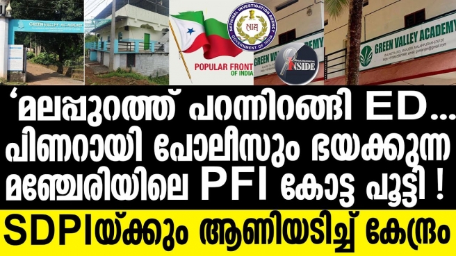 മലപ്പുറത്ത് പറന്നിറങ്ങി പോപ്പുലര്ഫ്രണ്ടിന്റെ 67 കോടിയുടെ സമ്പത്ത് കണ്ടുകെട്ടി എന്ഫോഴ്സ്മെന്റ് ഡയറക്ട്രേറ്റ് !! പിണറായി പോലീസിനും മുട്ടിടിക്കുന്ന മഞ്ചേരിയിലെ 24 ഏക്കറിലെ പിഎഫ്ഐ കോട്ട ഗ്രീന് വാലിക്ക് സീല്വെച്ചു; എസ് ഡി പി ഐയുടെ കോടികളും തൂക്കിയെടുത്തു!! തലപൊക്കാന് നോക്കിയ ഭീകര ഗ്രൂപ്പിന്റെ പത്തിയ്ക്കടിച്ച് താഴെയിട്ടു