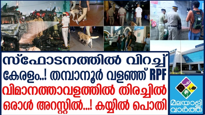 സ്ഫോടനത്തിൽ വിറച്ച് കേരളം..! തമ്പാനൂർ വളഞ്ഞ് RPF വിമാനത്താവളത്തിൽ തിരച്ചിൽ ഒരാൾ അറസ്റ്റിൽ...! കയ്യിൽ പൊതി