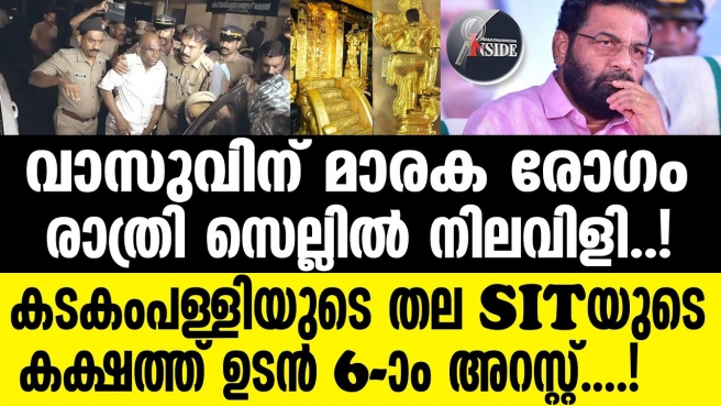 വാസുവിന് മാരക രോഗം രാത്രി സെല്ലിൽ നിലവിളി..! കടകംപള്ളിയുടെ തല SITയുടെ കക്ഷത്ത് ഉടൻ 6-ാം അറസ്റ്റ്....!