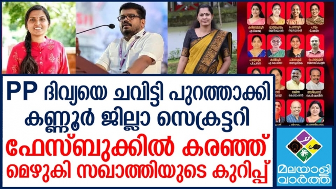 ''പി പി ദിവ്യക് സീറ്റില്ല , റിപ്പോട്ടർ, മാതൃഭൂമി, മനോരമ വിലാപം... ". മുൻ ജില്ലാ പഞ്ചായത്ത് പ്രസിഡന്റ് പി.പി. ദിവ്യ ഒഴിവാക്കി സഥാനാർത്ഥി പട്ടിക.. ദിവ്യയല്ല, വികസനമാണ് ചർച്ചയാവുക എന്നായിരുന്നു സി.പി.എമ്മിന്റെ മറുപടി..