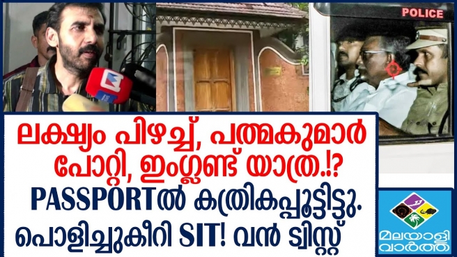 ആറന്മുളയിലെ വീട്ടിൽ നടത്തിയ റെയ്ഡിൽ ശബരിമല സ്വർണപ്പാളിക്കേസിൽ അറസ്റ്റിലായ മുൻ ദേവസ്വം പ്രസിഡന്റ് എ പത്മകുമാറിന്റെ പാസ്പോർട്ട് പ്രത്യേക അന്വേഷണ സംഘം(എസ്.ഐ.ടി.) പിടിച്ചെടുത്തു. ഒന്നാംപ്രതി ഉണ്ണികൃഷ്ണൻ പോറ്റിയുടെ ഇംഗ്ലണ്ട് യാത്രകളിൽ പത്മകുമാറും പോയിരുന്നോ എന്നറിയാനാണ് ശ്രമം. പത്മകുമാറിന്റെയും ഭാര്യയുടെയും ആദായനികുതി വിവരങ്ങളും പിടിച്ചെടുത്തിട്ടുണ്ട്. ഇരുവരുടെയും ആസ്തികളിലും അന്വേഷണം നടത്തും.