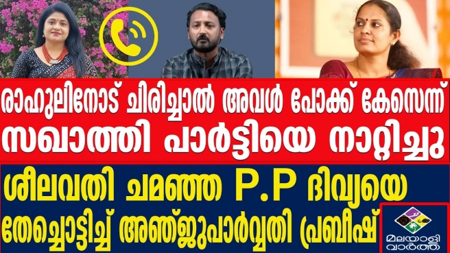 രാഹുലിനോട് ചിരിച്ചാൽ അവൾ പോക്ക് കേസെന്ന്; സഖാത്തി പാർട്ടിയെ നാറ്റിച്ചു, ശീലവതി ചമഞ്ഞ P.P ദിവ്യയെ തേച്ചൊട്ടിച്ച് അഞ്ജുപാർവ്വതി പ്രബീഷ്