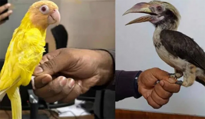 തായ്ലന്ഡില് നിന്നെത്തിയ ദമ്പതികളുടെ ബാഗേജില് വംശനാശ ഭീഷണി നേരിടുന്ന 11 പക്ഷികള്
