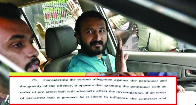 മുന്കൂര് ജാമ്യം എന്നത് ഒരു അസാധാരണ ആനുകൂല്യമാണ് എന്നും, അത് 'പതിവ് നടപടി'യായി കണക്കാക്കാനാവില്ലെന്നും ജയ് പ്രകാശ് സിംഗ് കേസിലെ സുപ്രീം കോടതി വിധി ഉദ്ധരിച്ച് കോടതി ഓര്മ്മിപ്പിച്ചു.പരാതിക്കാരന്റെ വിദ്വേഷം തീര്ക്കാനോ വ്യക്തിപരമായ വൈരാഗ്യം (grudge or personal vendetta) തീര്ക്കാനോ വേണ്ടി ഒരാളെ ഉപദ്രവിക്കുന്നതില് നിന്നും അപമാനിക്കുന്നതില് നിന്നും സംരക്ഷിക്കുക എന്നതാണ് മുന്കൂര് ജാമ്യത്തിന്റെ ലക്ഷ്യം.നിലവിലെ കേസില്, മുന്കൂര് ജാമ്യം നല്കുന്നതിനുള്ള അസാധാരണമായ സാഹചര്യം (exceptional circumstance) കാണുന്നില്ലെന്ന് കോടതി തീര്പ്പാക്കി.