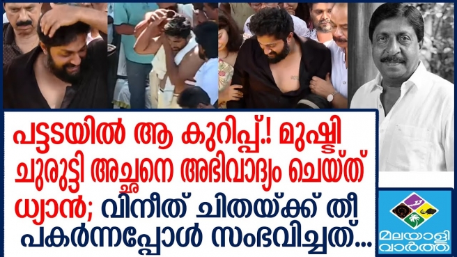 'എല്ലാവർക്കും നന്മകൾ നേരുന്നു'... സത്യൻ അന്തിക്കാട് കുറിച്ച കടലാസും പേനയും ഭൗതിക ശരീരത്തോടൊപ്പം ചിതയിൽ വച്ചു: മകന് വിനീത് ശ്രീനിവാസൻ ചിതയ്ക്ക് തീ കൊളുത്തിയപ്പോൾ നിറകണ്ണുകളോടെ ചിതയിലേക്ക് നോക്കി മുഷ്ടി ചുരുട്ടി അച്ഛനെ അഭിവാദ്യം ചെയ്ത് ധ്യാൻ: കരച്ചിലടക്കാൻ പാടുപെട്ട് ഭാര്യയും മരുമക്കളും കൊച്ചുമക്കളും: അവസാനമായി കാണാനും, അന്ത്യാഞ്ജലി അര്പ്പിക്കാനും എത്തിയ ജനക്കൂട്ടത്തെ നിയന്ത്രിക്കാന് പാടുപെട്ട് പോലീസ്...