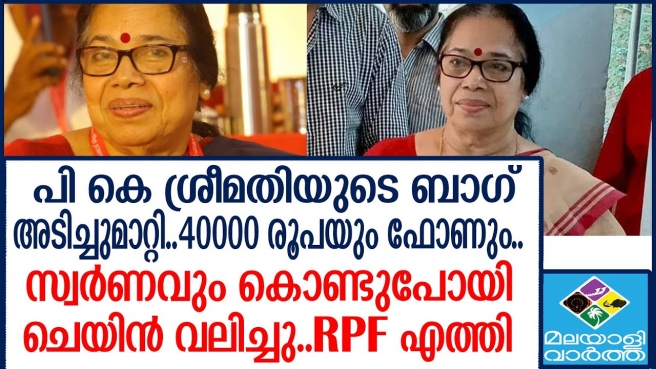 പി കെ ശ്രീമതിയുടെ ബാഗ് അടിച്ചുമാറ്റി..40000 രൂപയും ഫോണും.. സ്വർണവും കൊണ്ടുപോയി ചെയിൻ വലിച്ചു..RPF എത്തി