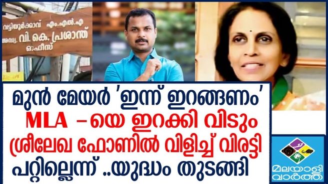 മുന് മേയർ 'ഇന്ന് ഇറങ്ങണം' MLA -യെ ഇറക്കി വിടും ശ്രീലേഖ ഫോണിൽ വിളിച്ച് വിരട്ടി പറ്റില്ലെന്ന് ..യുദ്ധം തുടങ്ങി