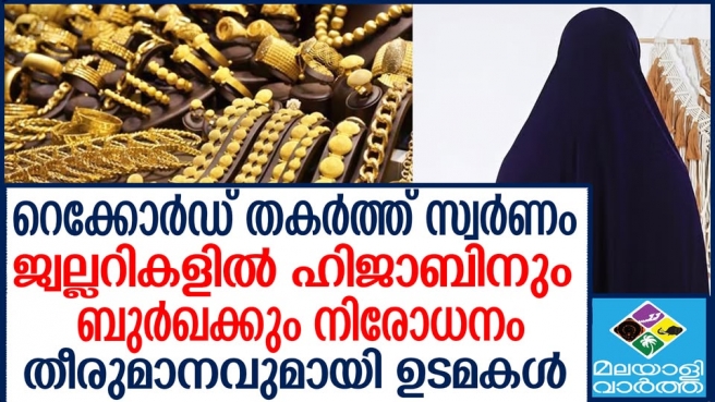 ജ്വല്ലറികളിൽ ഹിജാബിനും ബുർഖക്കും നിരോധനം..സ്വർണവിലയിൽ സുരക്ഷ മുൻനിർത്തിയാണ് ജ്വല്ലറിയുടമകളുടെ തീരുമാനം.. ഉപഭോക്താക്കൾക്ക് തിരിച്ചറിയൽ രേഖകളും നിർബന്ധമാക്കിയിട്ടുണ്ട്...