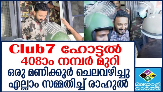 ഹോട്ടലിലെ 408ാം നമ്പർ മുറിയിൽ എത്തിയിരുന്നതായും രാഹുൽ പൊലീസിനോടു സമ്മതിച്ചു. 2024 ഏപ്രിൽ 8ന് ഉച്ചയ്ക്ക് 1.45 ഓടെ ഇവിടെ എത്തിയതായും യുവതിയുമായി ഒരു മണിക്കൂറോളം ചെലവഴിച്ചതായും സമ്മതിച്ചു. എന്നാൽ പീഡനത്തെ കുറിച്ചുള്ള പൊലീസിന്റെ ആവർത്തിച്ചുള്ള ചോദ്യങ്ങൾക്ക് മൗനമായിരുന്നു മറുപടി.ഇന്നു രാവിലെ 5.40 ഓടെയാണ് പത്തനംതിട്ട എആർ ക്യാംപിൽനിന്നും തിരുവല്ലയിലേക്കു രാഹുലുമായി പൊലീസ് സംഘം പുറപ്പെട്ടത്.