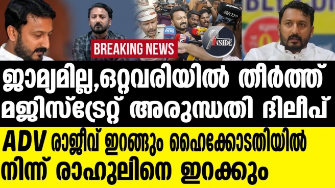 ജാമ്യമില്ല,ഒറ്റവരിയിൽ തീർത്ത് മജിസ്ട്രേറ്റ് അരുന്ധതി ദിലീപ് ADV രാജീവ് ഇറങ്ങും ഹൈക്കോടതിയിൽ നിന്ന് രാഹുലിനെ ഇറക്കും