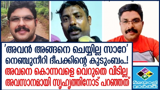 അവൻ അങ്ങനെ ഒന്നും ചെയ്യില്ല സാറേ ..നെഞ്ച് പൊട്ടി കരഞ്ഞ് ദീപക്കിന്റെ ഉറ്റവർ; എന്റെ പൊന്നു മുത്തേ നീ എന്തിനാ ഇങ്ങനെ ചെയ്തേ എന്ന് കരഞ്ഞ് അമ്മ; അപമാന ഭാരത്തിലായ യുവാവ് ജീവനൊടുക്കിയ സംഭവത്തിൽ നിയമനടപടിക്കൊരുങ്ങി വീട്ടുകാർ