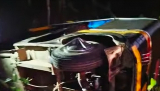 രാത്രി എട്ട് മണിയോടെ പെരിങ്ങമ്മല ഭാഗത്ത് നിന്നും വന്നുകൊണ്ടിരുന്ന ഓട്ടോറിക്ഷയെ റോഡിന് വശത്ത് നിന്നും പാഞ്ഞടുത്ത കാട്ടുപോത്ത് ആക്രമിക്കുകയായിരുന്നു. കാട്ടുപോത്തിന്റെ ആക്രമണത്തില് ഓട്ടോറിക്ഷ നിയന്ത്രണം വിട്ട് തലകീഴായി മറിഞ്ഞു.