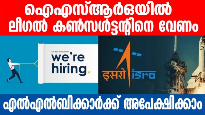 ഐഎസ്ആര്ഒയില് ലീഗല് കണ്സള്ട്ടന്റിനെ വേണം എല്എല്ബിക്കാര്ക്ക് അപേക്ഷിക്കാം