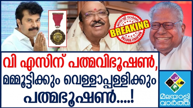 വി എസിന് പത്മവിഭൂഷൺ, മമ്മൂട്ടിക്കും വെള്ളാപ്പള്ളിക്കും പത്മഭൂഷൺ....!