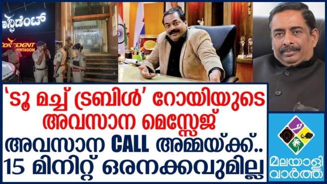 'ടൂ മച്ച് ട്രബിള്' എന്ന് വിദേശത്തുള്ള ജേഷ്ഠന് ബാബു റോയിക്ക് സി ജെ റോയി സന്ദേശം അയച്ചു..ഏകദേശം 15 മിനിറ്റുകള്ക്ക് ശേഷമാണ് റോയി രക്തത്തില് കുളിച്ചു കിടക്കുന്നത് ജീവനക്കാര് കാണുന്നത്..
