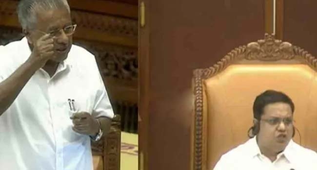 ഇതിന് മുഖ്യമന്ത്രി മറുപടി പറയുന്നതിന് മുമ്പായി സ്പീക്കർ നേരത്തെയുണ്ടായ സംഭങ്ങളെ കുറിച്ച് സംസാരിച്ചു. സ്പീക്കറുടെ ഡയസിലേക്ക് ഇടിച്ചുകയറിയ രീതി ജനാധിപത്യ മര്യാദയല്ലെന്ന് സ്പീക്കർ.