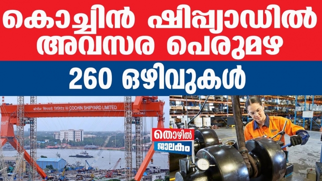 കൊച്ചിൻ ഷിപ്പ്യാഡിൽ അവസര പെരുമഴ 260 ഒഴിവുകൾ ഇപ്പോൾ തന്നെ അപേക്ഷിക്കാം