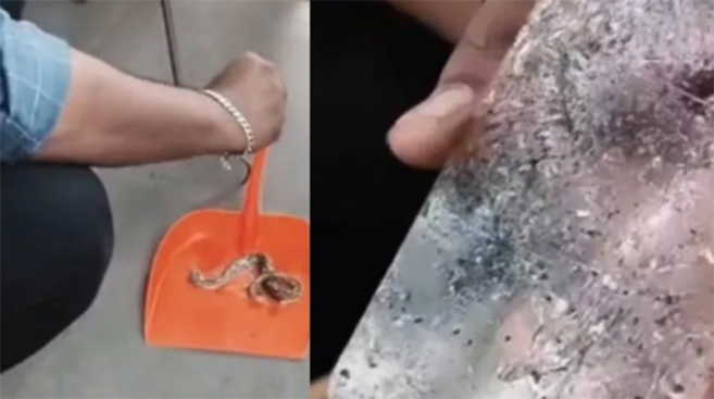 മൊബൈല് സ്ക്രീന് ഗാര്ഡില് കുടുങ്ങി അണലിക്കുഞ്ഞ്?