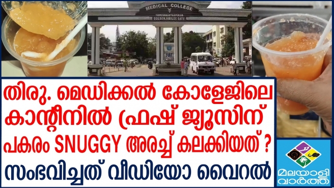 തിരുഃ മെഡിക്കൽ കോളേജിലെ കാൻ്റീനിൽ ഫ്രഷ് ജ്യൂസിന് പകരം SNUGGY അരച്ച് കലക്കിയത്..? സംഭവിച്ചത് വീഡിയോ വൈറൽ